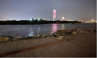 4月16日22时20分,一艘由舟山驶往闵行方向的载运石子的货船,航行至黄浦江龙华港下游约300米处时碰擦徐汇滨江岸线,造成滨江岸线约3米栏杆和装饰面板受损,事发轮右舷船艏有轻微擦痕,船上所载9人无人员伤亡。