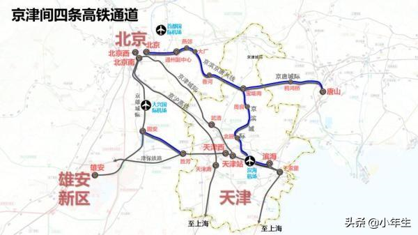 需要说明的是,高铁双通道、甚至多通道在京津冀、长三角、粤港澳等国家级城市群早就不是稀罕事。在京津冀,北京与天津除了已运营的京津城际铁路、京沪高铁外,还有在建的京唐城际铁路以及规划中的天津至北京大兴国际机场联络线,总共四条;在长三角,上海与南京、杭州、合肥区域中心城市(含规划)分别将有三条、四条、四条;在粤港澳,广州与深圳在现有的广深港高铁基础上,还包括在建中的赣深高铁和南深高铁,其中赣深高铁预计将于今年12月开通运营。