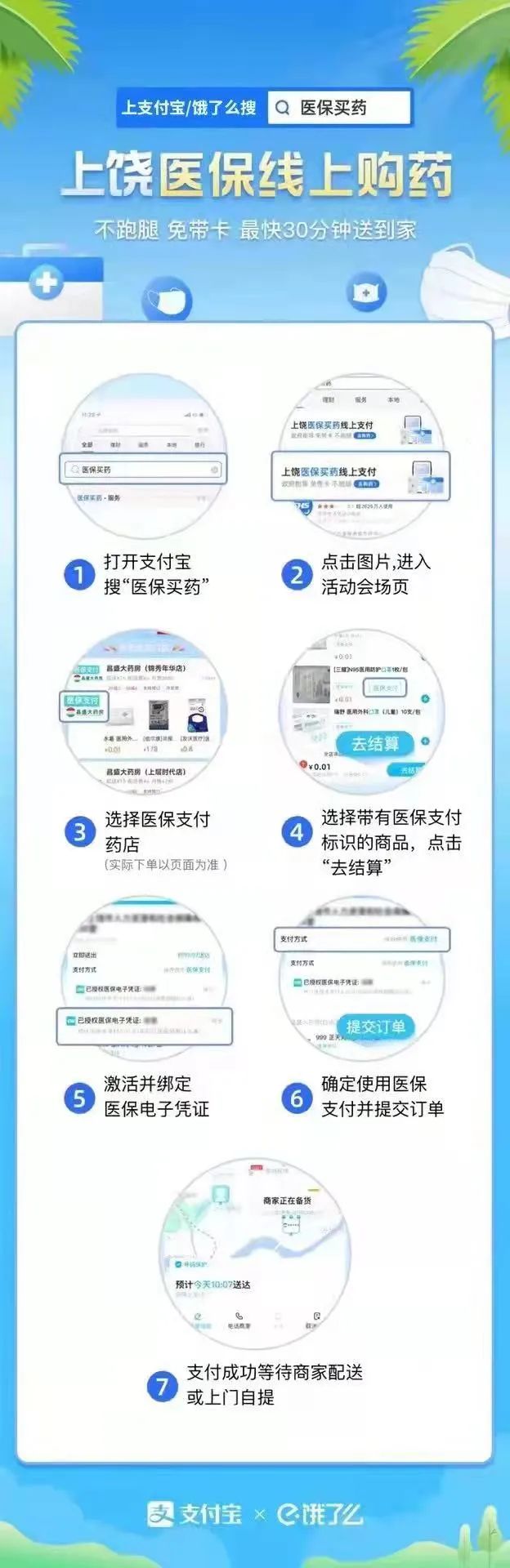即日起,上饶市民可以通过支付宝、饿了么、赣服通搜“医保买药”,选择有“医保支付”标识的品种或药店下单,在线医保支付,由饿了么提供即配服务最快30分钟送达。