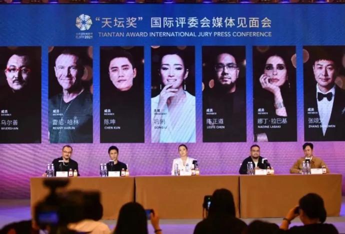 ▲“天坛奖”国际评委会媒体见面会上,陈坤呼吁给年纪大的男演员多点机会。图源互联网