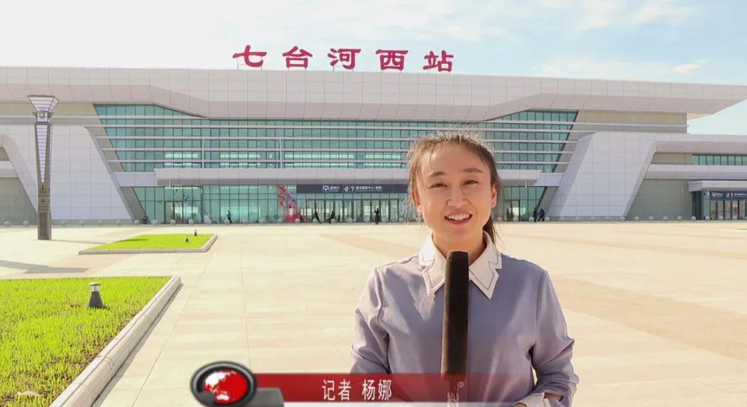 记者杨娜:我现在是在七台河西站站前广场,在我身后的七台河西站站房以字母“v”为造型,秉承“短道速滑,胜利之城”的设计理念,成功将七台河冬奥冠军之乡的城市名片展现给大家。
