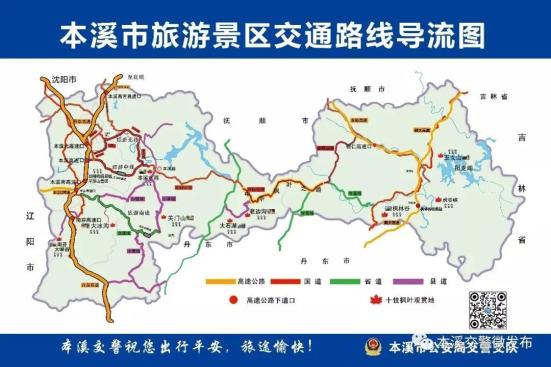 本溪交警提示:建议使用高德、百度等手机导航系统,获取交通指数、实时路况、拥堵提示、路口导向车道划分、限行限速提示、事故多发点段等交通信息,避开拥堵路段。建议司机朋友及时收听交通广播,关注实时动态信息。在各主要高速口和沿线交警服务站为大家准备了本溪交警微发布宣传单,司机朋友可以通过扫码方式了解信息,规划出行路线。