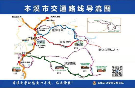 如出现交通拥堵或流量饱和的情况,本溪交警还将适时采取潮汐车道、临时交通管制、信号灯调配和强制分流措施进行管控,严防交通拥堵。