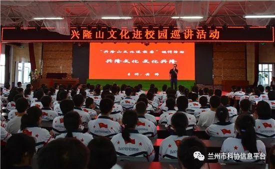 9月13日下午,榆中一中科普基地开展了“兴隆文化、文化兴隆”为主题的“兴隆山景区文化进校园”巡讲活动。活动邀请了兴隆山管理局景区负责人冯康喜、导游部经理黄伟向榆中一中高一年级800多名师生进行了主题讲座。