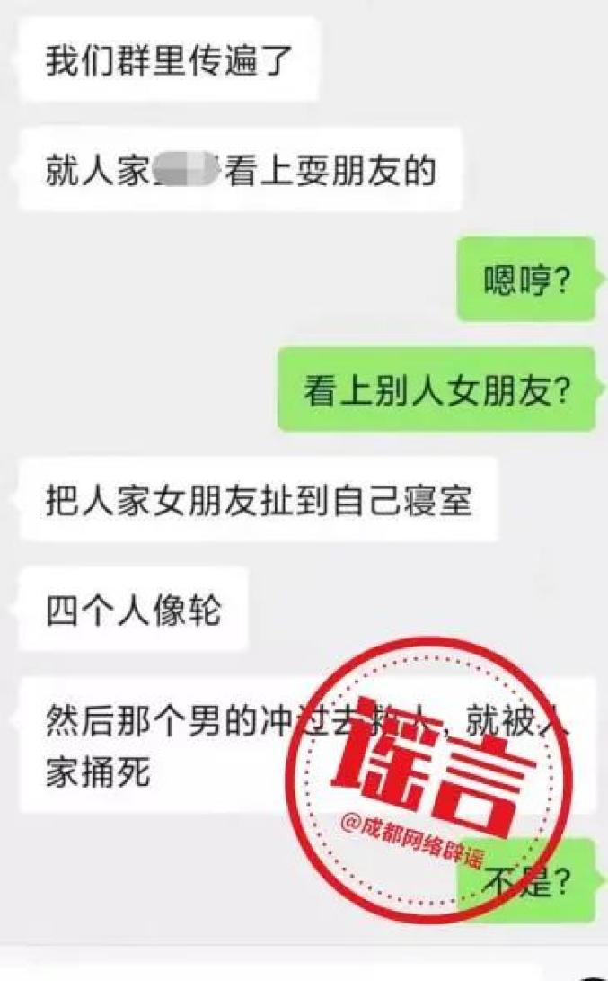 原标题:《【网络谣言粉碎机】成都一住户被分尸?学生为救女友被捅死?假的!造谣者将被追责》