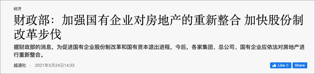 2021年5月,越通社报道,据越南财政部统计,2020年以及2016-2020年阶段国有企业股份制改革和撤资进度缓慢,并未达到既定目标。2016-2020年仍有89家国有企业仍未完成股份制改革,其中河内市13家,胡志明市38家,越南企业国有资本管理委员会6家,建设部2家。