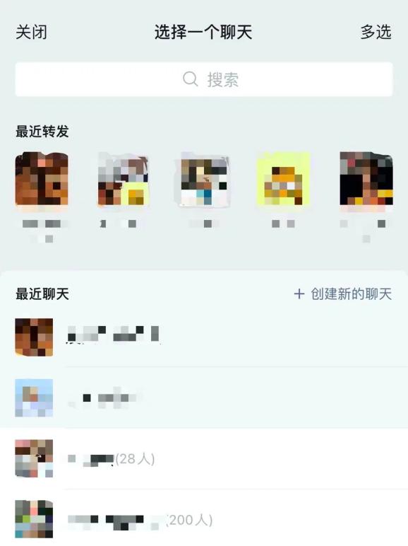 此外,转发界面也发生了一些变化,“最近转发”从纵向排列改为了横向排列,下方变成了“最近聊天”,用户可以更方便找到转发对象。