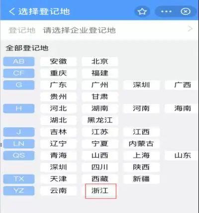通过人脸识别后,选择公司所在的登记地“浙江”。