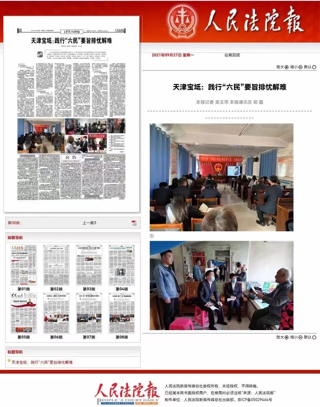原标题:《【媒体聚焦】人民法院报:宝坻法院为群众办实事,践行“六民”要旨排忧解难》