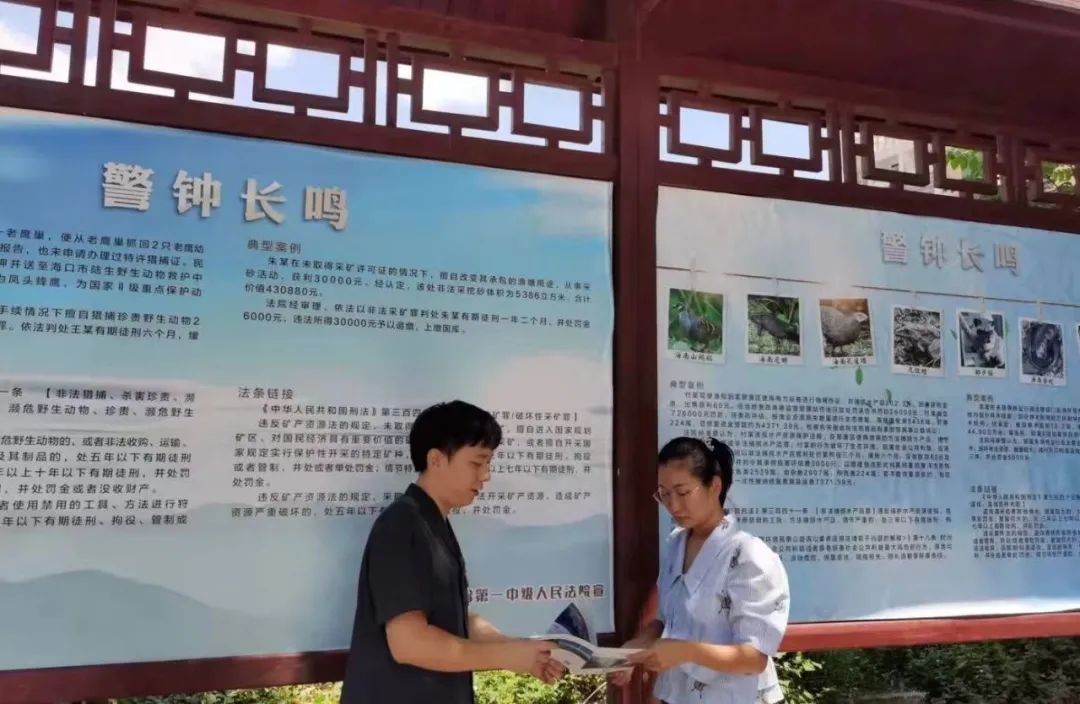 本次庭审邀请了当地干部及部分群众参与了旁听。庭审结束后,法院干警向参与旁听的群众发放了环境资源司法保护宣传册并耐心解说与群众生活、工作息息相关的环境保护法律知识。