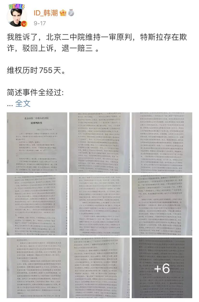 特斯拉车主韩潮与特斯拉之间的纠纷还在持续上演。