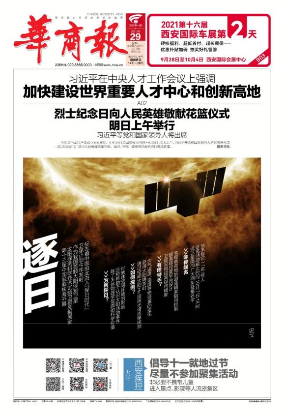 ▲在第十三届中国航展上,中国航天科技集团八院展出了中国首颗太阳探测科学技术试验卫星模型。卫星计划今年发射,作为我国首颗太阳探测卫星,它的发射成功将标志中国即将进入探日时代。