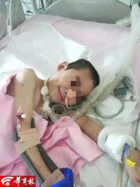 ▲9月28日,西安国际医学中心,来自安康的10岁男孩浩浩沉默地躺在病床上。因父亲有精神疾病、母亲离家出走,他从小被当地养老院收容,却不幸身患重病,无法进食,肚子胀如鼓,排泄靠仪器。虽已10岁,体重却只有40斤。医生说,浩浩患假性肠梗阻,这种病全球罕见,病因不详,症状复杂治疗棘手。在ICU住了45天,浩浩多次出现危急情况,但“身为医生不能服软”,经多科室协作,医护人员终于将他从死亡线救回。养老院也支付了所有的医疗费用,花费50多万元。目前浩浩腹胀已减轻,情况也趋于稳定。