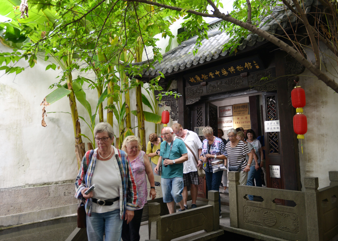 ▲ 胡庆余堂中药博物馆已成为外国游客来杭参观的重要一站 张永胜 摄