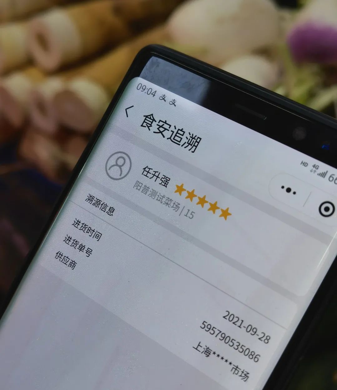 此外,在菜品称重结算后,电子秤会自动打印出一张销售小票。每张小票上都印有二维码,市民扫一扫即可查询商品的来源,更全面地了解菜品信息。