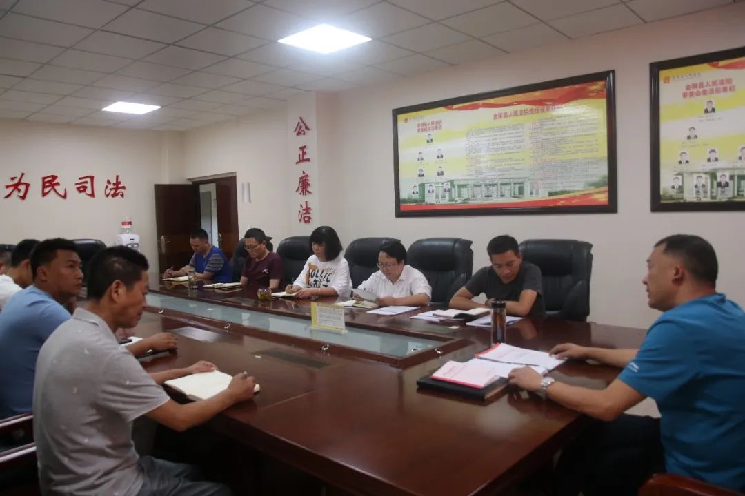 9月26日,金阳法院召开党组扩大会议,传达学习全州法院院长座谈会会议精神。会议由党组书记、院长董旺丹主持,党组成员、各部门负责人参加会议。