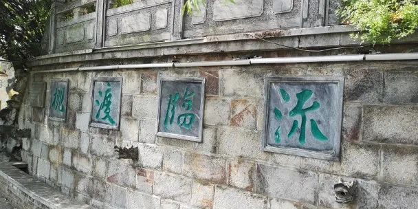 秦淮河畔有一副“桃渡临流”的题字,据说是临摹的唐寅(明朝苏州画家,绘画上与沈周、文徵明、仇英并称“吴门四家”,又称“明四家”)真迹。听导览说唐寅的真迹就在旁边的山上,娃心心念念去找,不过最终还是没能找到。