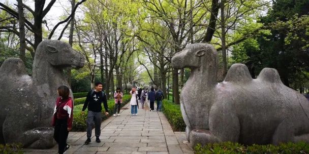用完午餐,我们就打算参观明孝陵了。为不走回头路,我们选择打车到下马坊遗址公园, 从下马坊到明孝陵正大门大金门之间的神道,这是整个陵园的“导引区”。