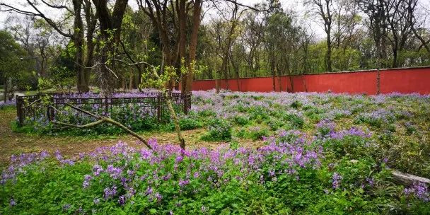 空气很好,灰喜鹊叽叽喳喳地叫,二月兰也开得特别肆意。