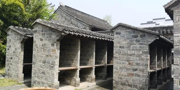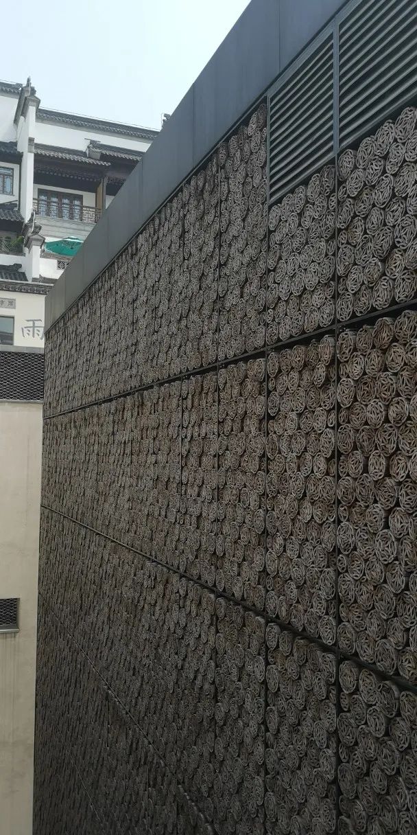 墙面用瓦堆成书卷状,象征着"读万卷书";