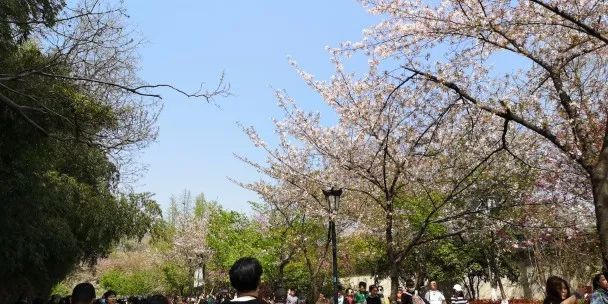 从鸡鸣寺到和平门这一线,是摩肩接踵的人群。可惜路两旁的樱花,已是凋谢之态了。