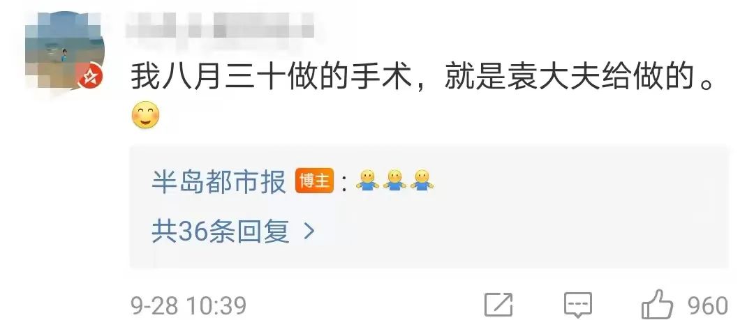 9月28日,袁医生骨折后坚持手术的视频,经半岛都市报微博等平台发布后,引起众多网友的讨论和关注,成为网络热点。