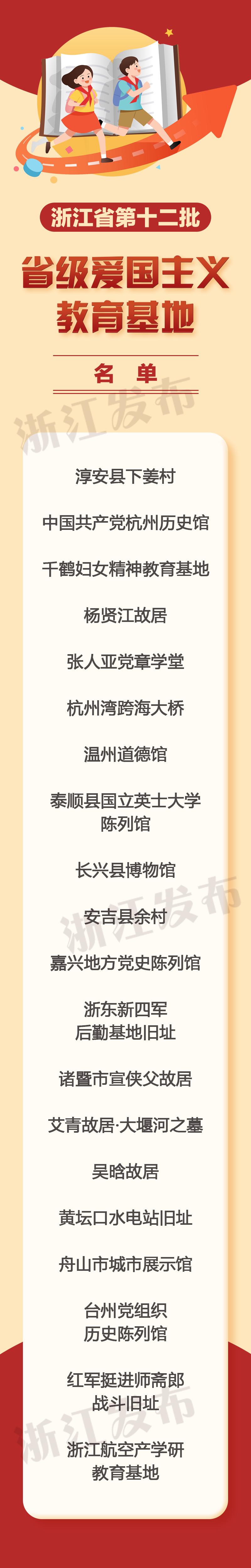 原标题:《浙江命名新一批爱国主义教育基地!都在哪里,有啥特色?一起来看》