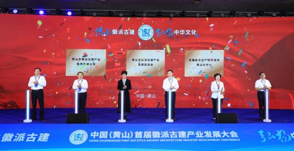 为加快构建完善的徽派古建产业链,由黄山城投集团牵头组建的黄山市徽派古建产业集团有限公司、黄山市徽派古建产业发展促进会和由黄山文投集团与安徽省文化产权交易所有限公司合作设立的安徽省文化产权交易所黄山分中心在开幕式上揭牌。