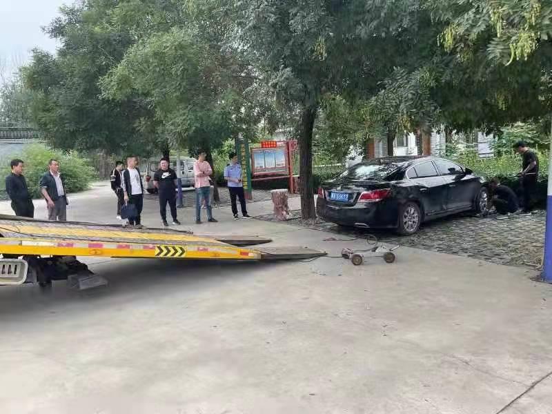 在执行现场,执行法官一边积极联系被执行人进行沟通劝导,希望其能主动将车辆交由法院处理,一边叫来了拖车,做好强制执行的准备。