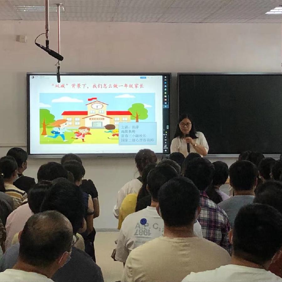 春建乡妇联特邀请富春三小分管德育副校长、富阳区心理健康教育学科带头人张萍老师为春建乡中小学的新生家长们做《“双减”背景下,我们怎么做一年级家长》的家庭教育知识讲座。