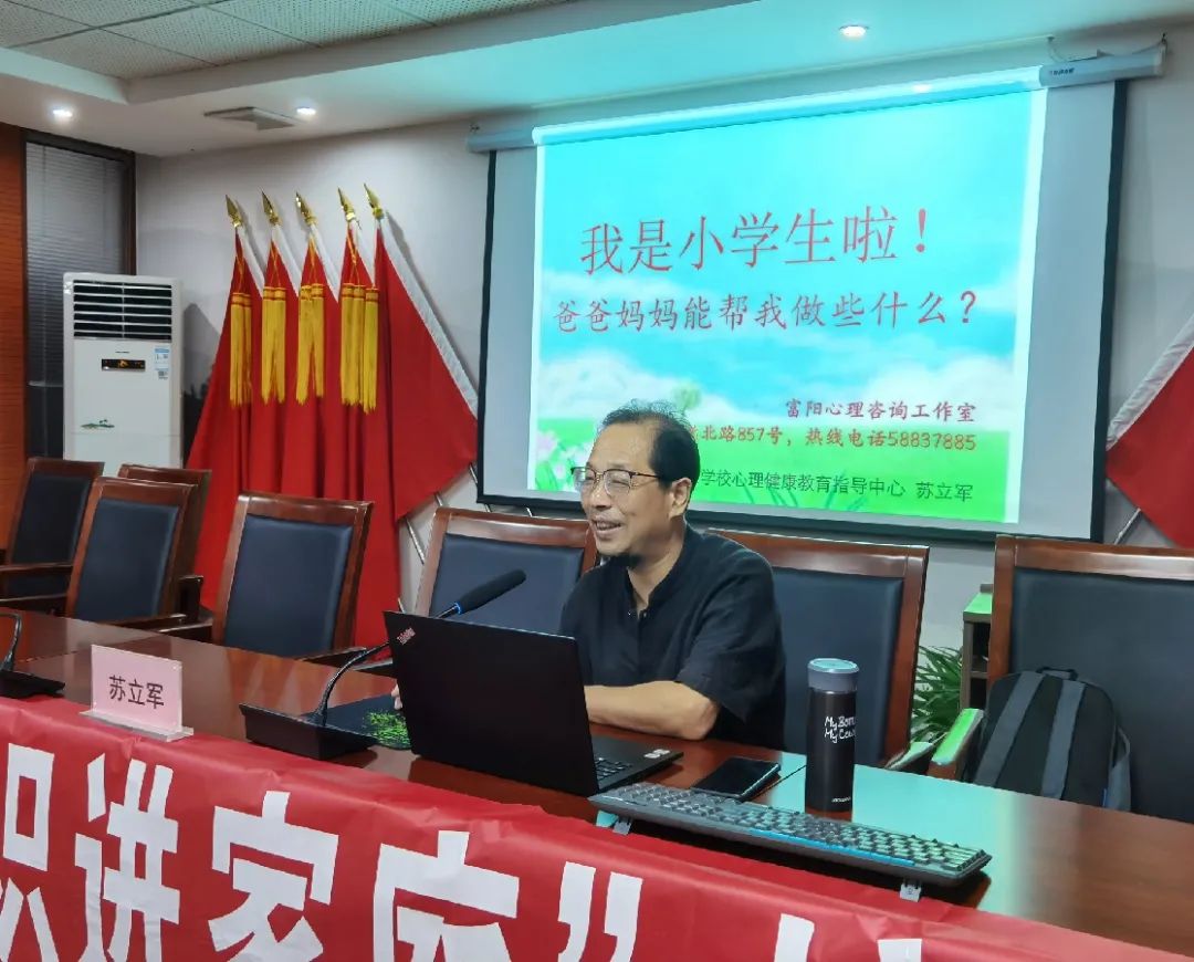 本次主题为“我是小学生啦”,幼儿园大班和一年级的家长60余人参与,特别邀请了富阳区教育发展研究中心心理健康、家庭教育教研员苏立军老师前来授课。