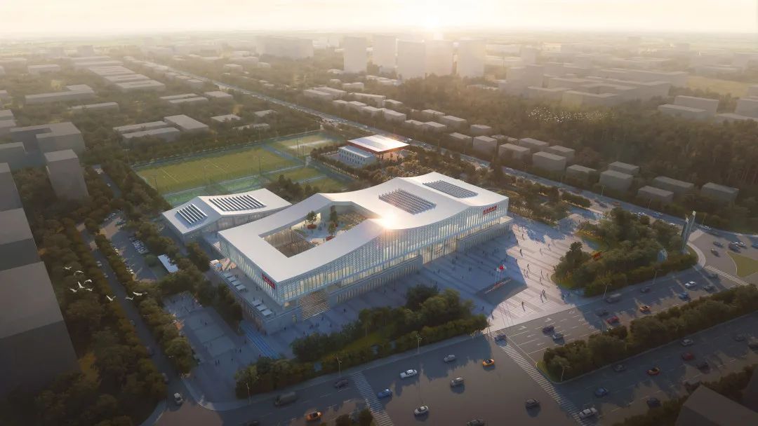 项目总建筑面积约3.2万平方米,由综合馆和游泳馆组成,主场馆建筑方案以长武汉长江之水为主题,通过长江水文化提取结合传统坡屋顶演变,形成“水浪冲沙”的建筑形态,显现出简洁大气、美观现代的场馆风格。