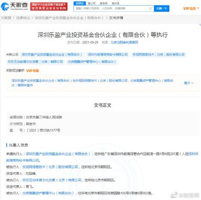 近日的一个案件就显示,深圳乐盈产业投资基金申请对乐视网、乐乐互动、北京鹏翼资管进行强制执行,案件裁判结果为:冻结、划拨被执行人银行存款15亿元和应支付的最低收益、迟延履行期间的债务利息、申请执行费以及执行中实际支出费用。但案件流程信息显示,目前该案件因被执行人无财产可供执行已成终本案件。