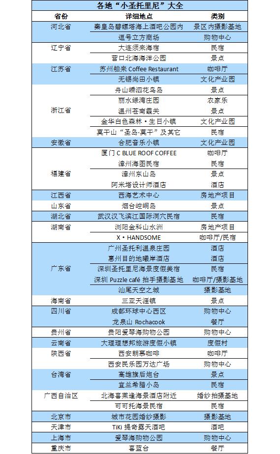 据笔者根据小红书笔记的不完全统计,像这样的“小圣托里尼”全中国至少有43个,分布在22个不同的省市自治区,其中浙江省、福建省、广东省因为幸运地拥有临海这一天然优势,成为小圣托里尼的主要产地。另一些非得在内陆城市乃至市中心商场里复制圣托里尼景观的,则多少有点牵强。不过,只要把握住小圣托里尼的精髓所在,即便先天不足,也能凭借蓝白涂料模仿个三分神似。