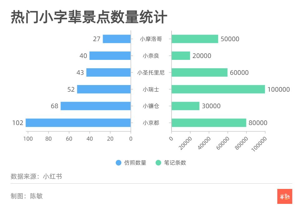 此外,全国还有至少102个“小京都”、68个“小镰仓”、52个“小瑞士”、40个“小奈良”,连“小摩洛哥”都有27个。