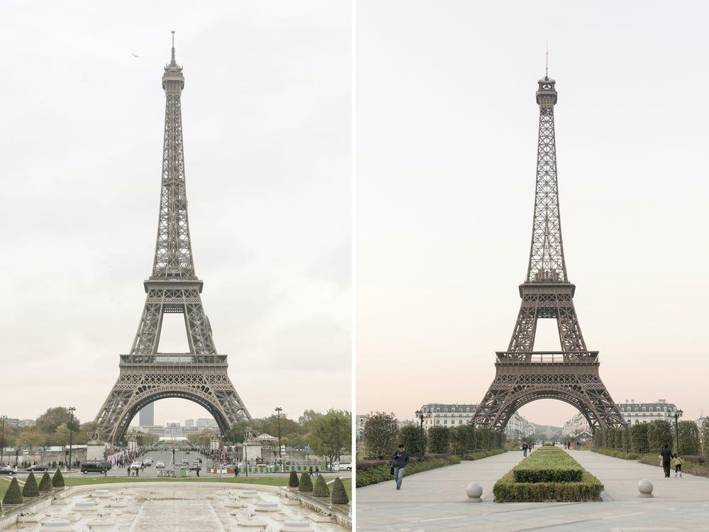从建筑、雕像到街道、路灯,广厦天都城几乎将整座巴黎复刻搬运到了杭州临平。当法国摄影师弗朗索瓦·普罗斯特(François Prost)看到拔地而起的埃菲尔铁塔时,估计也会有那么一瞬间错以为回到了万里之外的老家,全靠周边住户在塔下种的菜地和街边“21世纪不动产”的招牌才将其拉回现实。