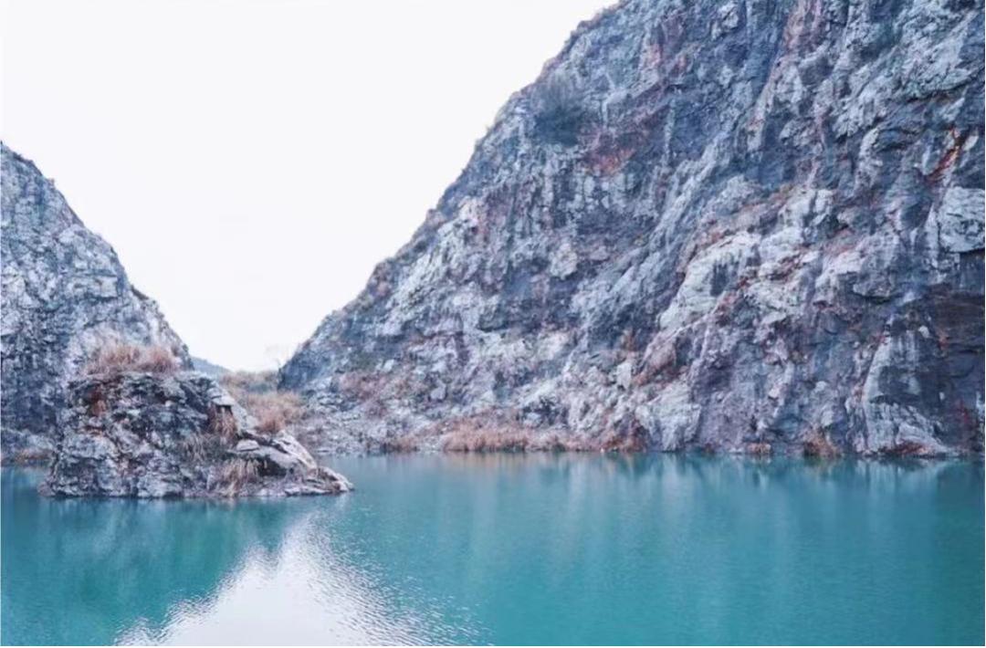 人民攻摄是一个分享摄影攻略、教人拍照的团队,其创始人之一大天告诉我们,园区在上世纪70年代曾是一座水泥厂,后山的峭壁很陡,植被罕见,石头的颜色偏青灰色,并不常见。“只要后期稍微再把色彩调冷,就会很北欧。我们有一次在拍的时候刚好是冬天,湖面的颜色和积雪就更像了。”
