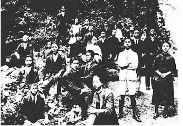 ▲1920年7月,蔡和森(后排右二)等部分新民学会会员及工学励进会会员在法国蒙达尔纪杜吉公园合影