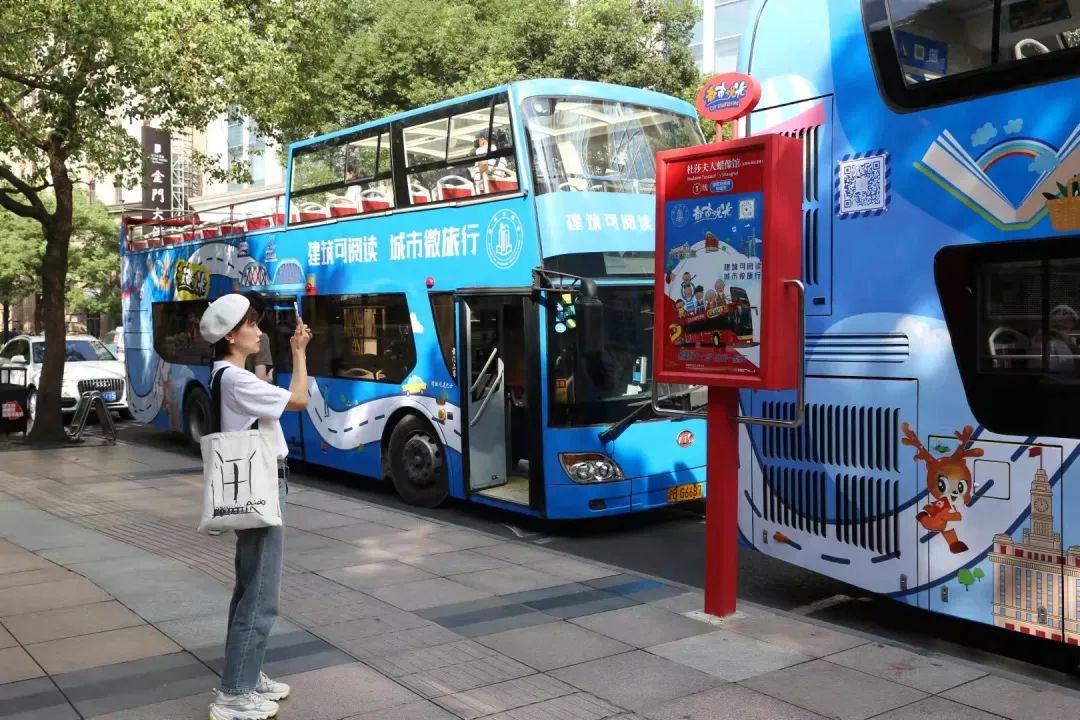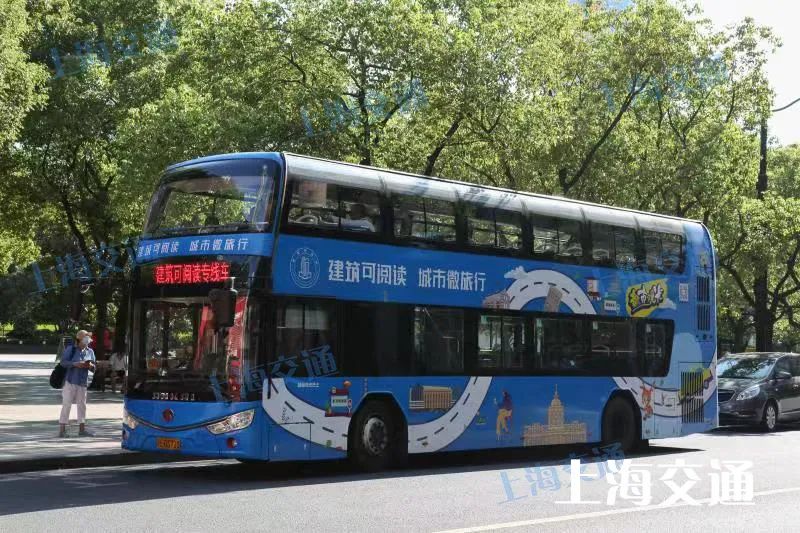 市民游客可乘坐印有建筑可阅读专属LOGO的蓝色双层巴士,打卡黄浦区、浦东新区、虹口区的经典建筑。
