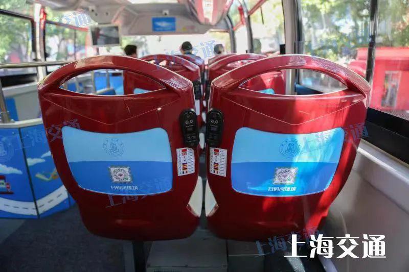 踏入车厢,耳边传来语音播报,介绍专线巴士的停靠站点等信息;入座后,每个座位的正前方贴有一张二维码,乘客用手机扫一扫,就能看到巴士沿线所有的经典历史建筑名单,点击其中一幢建筑,便能看到文字、语音导览信息。