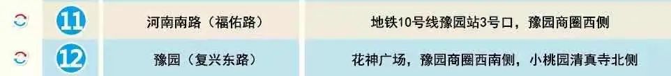 红线:南京路(新世界城)-人民广场(上海博物馆)-人民公园(上海美术馆)-南京路步行街(古象酒店门口)-外滩A(三阳食品)-外滩B(上海总工会)-十六铺(浦江游览码头)-豫园(人民路永安路)-新天地(星巴克门口)