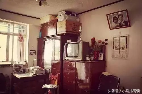 今人或许会问,怎么床头柜只有1个?告诉你,当年住房逼仄,大床一边贴着墙,故床头柜只能摆1个。如果住房面积大一些,有里外两间的话,那就不是36只脚。增加一张写字台,36+4=40只脚;再增加一对简易沙发和茶几,36+4+12=52只脚。翻一番,凑成72只脚也是有可能的。