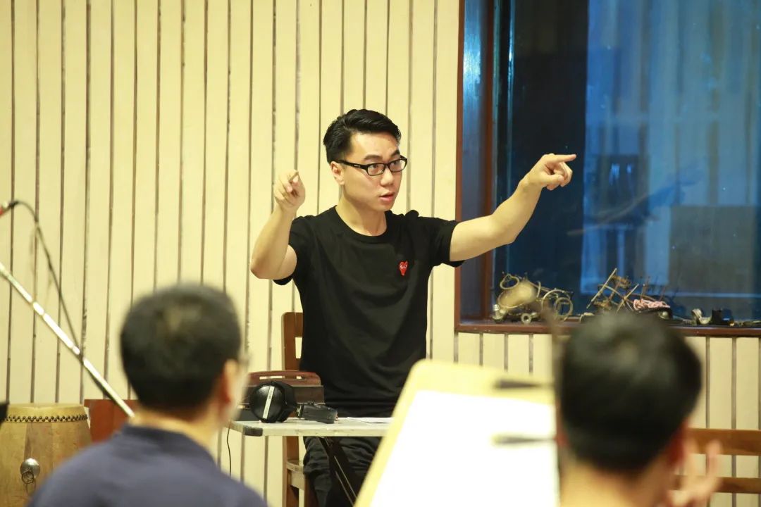 “主要就是要做好演员和乐队衔接的工作。不同演员演同一个人物的时候,状态不一样。整个舞台不同人物的不同性格,我都要把握,才能做好音乐和演出的结合。”谈起司鼓的工作,30出头的赵斌表现出了与年龄不符的成熟。“昨天王婉娜的贾宝玉,速度就比较快;第二场杨婷娜中青年贾宝玉,就更沉稳;最后一场惠丽老师,更细腻,更注重宝玉的情绪,这种都是演员在表演时的不同呈现。”