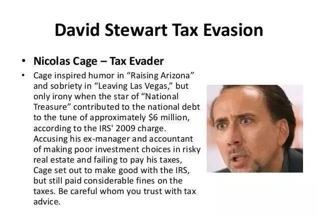 作为好莱坞收入最高的人,尼古拉斯凯奇曾经身价高达1.5亿美元(约合10亿元人民币),却在40岁的时候就已经破产。他没有自我反省,而是把责任推到了他的会计师身上。