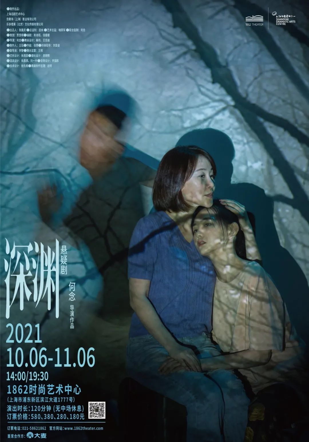 由上海话剧艺术中心制作出品的原创悬疑话剧《深渊》,2020年9月在上海话剧艺术中心·艺术剧院首演,2021年10月6日-11月6日在1862时尚艺术中心开演。