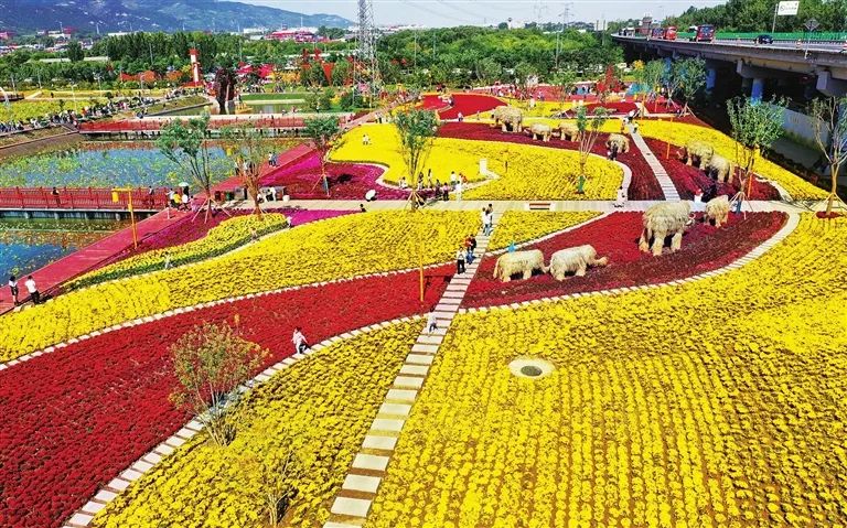 ▲ 10月1日,晋源区稻花城开园仪式暨第四届花卉艺术节在稻田公园盛大启幕。记者 宿晓健 摄