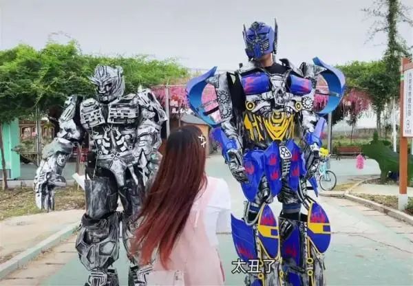 但为什么他们要冒这个风险呢?因为“山寨”在一些人眼里极有诱惑力。3米高的威震天市场价6000元一个,不买还可以租。那些小景区或商业机构,请人站台要花钱,营销广告要花钱,以便宜的价格弄来一个“威震天”,就算加上扮演者的薪水,也远比明星代言物美价廉。
