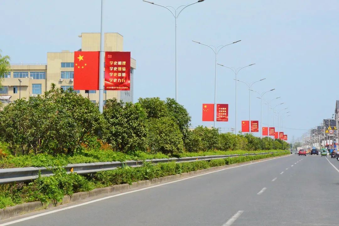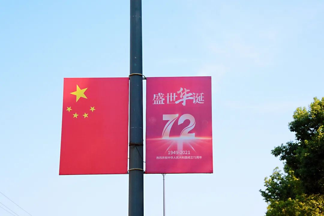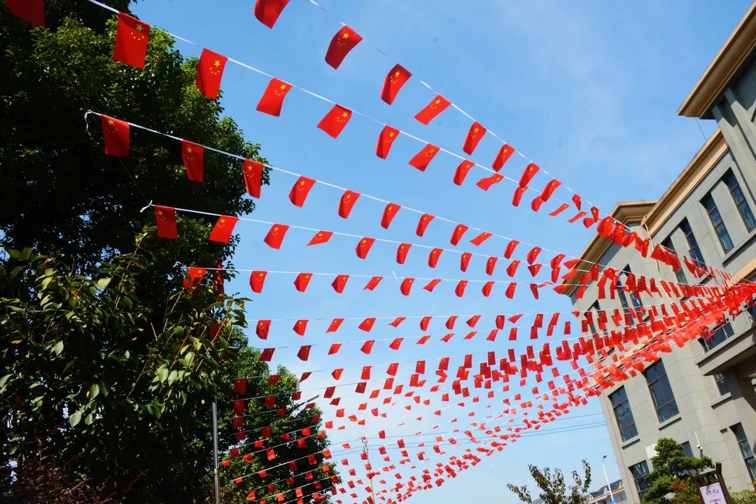 胜山街头红旗飘扬