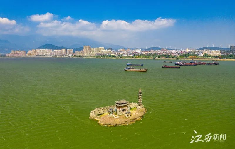 10月3日,记者看到庐山市的地标性文物古迹落星墩屹立在茫茫湖水之中,而往年这个时候,鄱阳湖已进入枯水期,落星墩一带的湖滩会变成一片大草原,成为网红“打卡地”。据悉,目前鄱阳湖水位较历史同期均值高了近1米。