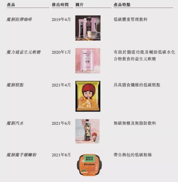 根据招股书显示,巨星传奇2019年4月开始在全国分销魔胴防弹咖啡,推出多款其他低碳水化合物饮品及食品,包括魔胴汽水及魔胴魔芋螺蛳粉。护肤品市场推出达人悦己主品牌线下多个产品子品牌,包括摩肌博士及茶小姐。2021年6月30日后,推出魔胴汽水、魔胴糕点、魔胴魔芋螺蛳粉,预计2021年四季度正式分销。